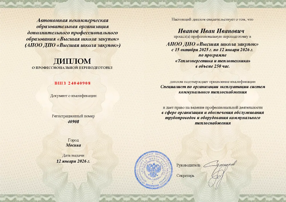 Это полноценная образовательная программа для получения дополнительной квалификации и освоения новой профессии. Для поступления также требуется высшее или среднее профессиональное образование (СПО). Итоговым документом является полноценный диплом о профессиональной переподготовке, который ценится на рынке труда. Программы являются наиболее объемными и начинаются от 250 академических часов, что обеспечивает глубокое погружение в специальность.