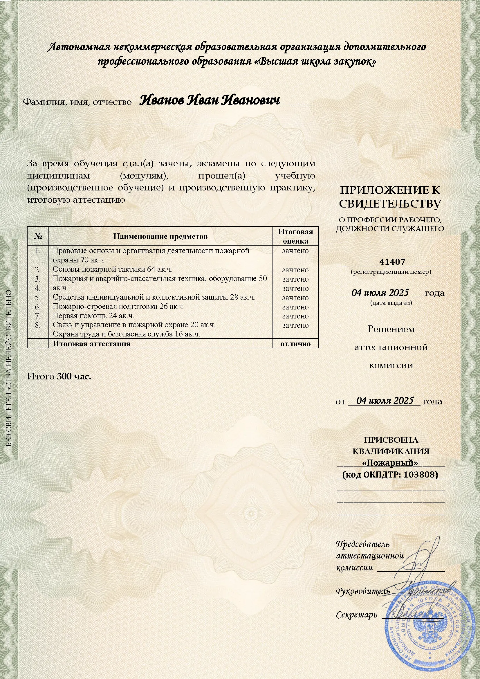 Профессиональное обучение, 300 академических часов, 8 модулей: законодательство и нормативные акты в области пожарной безопасности, тактика тушения пожаров и проведение аварийно-спасательных работ, устройство и использование пожарно-технического вооружения, оказание первой помощи. Онлайн-обучение в в Рязани с итоговой аттестацией.